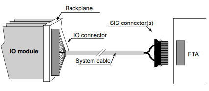 تتيح كابلات توصيل النظام - الخاصة بوحدات الإدخال/الإخراج لهيكل نظام إدارة السلامة - والمُزوّدة بوصلات إنهاء ميدانية (FTA) توصيل وحدات الإدخال/الإخراج الخاصة بنظام إدارة السلامة بوحدات الإنهاء الميدانية (عبر لوحة توصيل خلفية للإدخال/الإخراج). يوضح الشكل 449 في الصفحة 715 هذه العملية. تُسمى هذه الكابلات كابلات SICC، وتحتوي على موصل إدخال/إخراج واحد في أحد طرفيها وموصل FTA ذي 20 سنًا في الطرف الآخر.